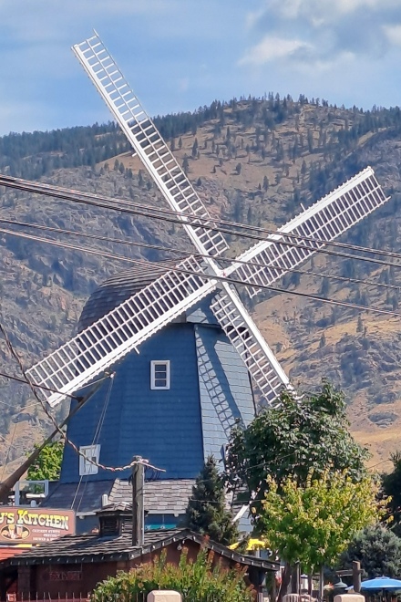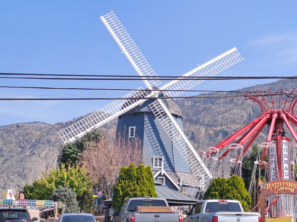Cet ancien moulin dit "le vieux moulin" a été absorbé par le parc d'attraction situé en bordure du lac Osoyoos dans la vallée de l'Okanagan, il sert à présent de boutique de glace que l'on peut déguster à son pied.