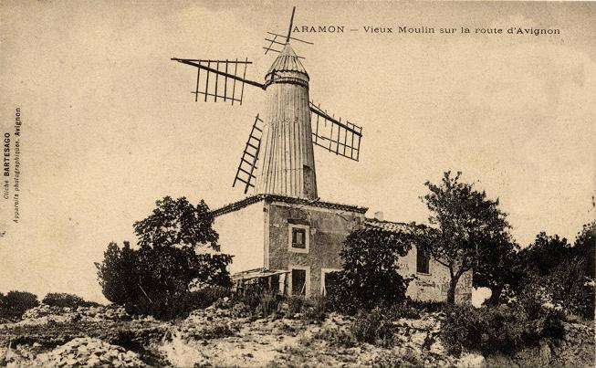 Moulin de Basso avant sa destruction en mars 2001 pour faire place au rond point du Pont reliant le Gard aux Bouches du Rhône. |
