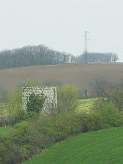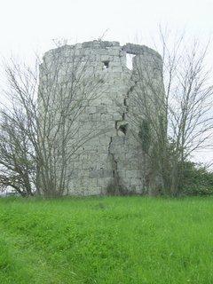 Deux moulins tours se surveillent l'un l'autre dans la campagne de Gasques, le premier semble souffrir du temps, son mur est fissuré.