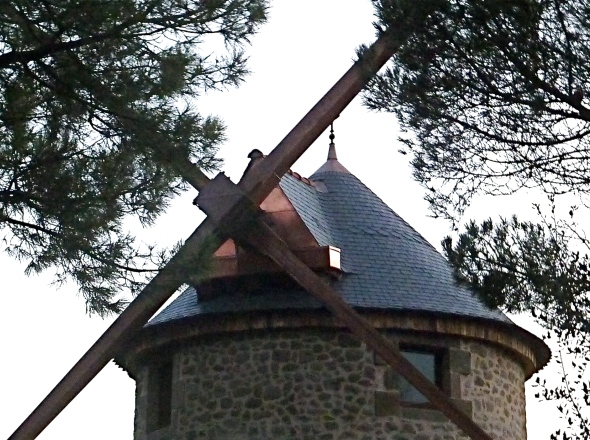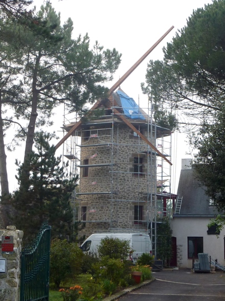 Moulin habité, la maçonnerie parfaitement refaite, les ailes Berton sont dépourvues de planches.