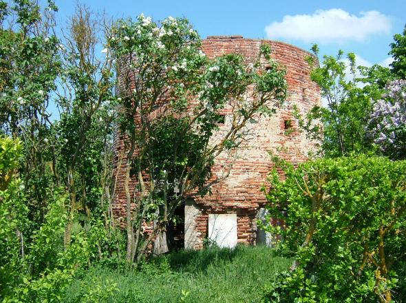 Ancien moulin tour en briques à l'état de ruine. A l'ouest du village.