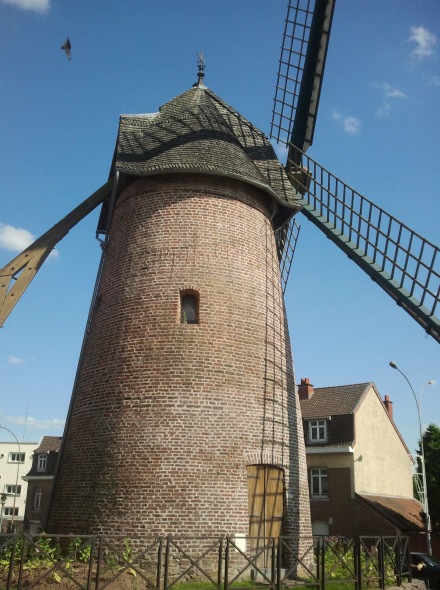 Un superbe moulin en briques au beau milieu d'immeubles à Maubeuge.