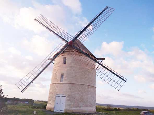 Moulin tour en moellons calcaires, situé sur l'une des collines de
