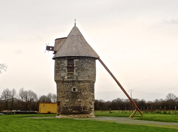 Moulin de type petit pied datant de la fin du XVIème ou début du XVIIe siècle, typique de Bretagne. Sa restauration prend forme, bientôt un nouveau toit et des nouvelles ailes en septembre !