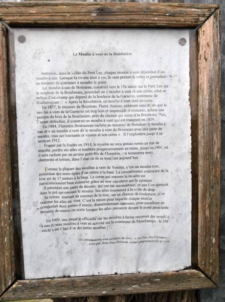 ƒ Moulin de la Boislinière Moulin tour sur une masse cavière. Son histoire est racontée dans le cadre ci-contre. (Photos Marie Lou Cau - mars 2010)