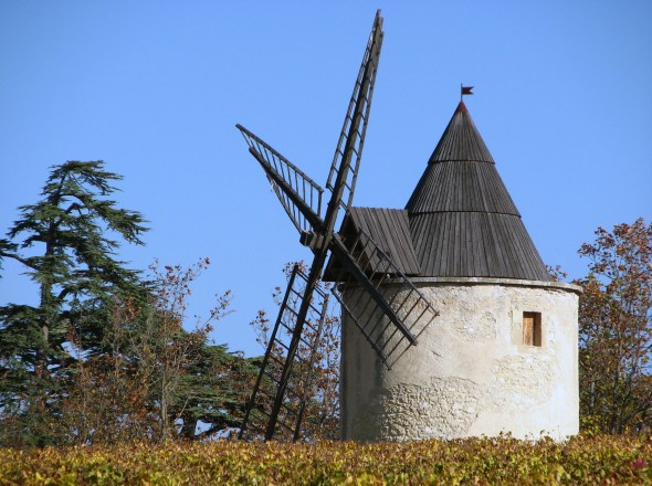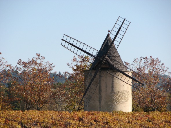 Magnifique moulin, restauré récemment, au milieu des vignes du Lubéron.