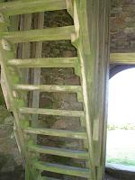 On peut accéder au sommet de la tour par des escaliers de meunier à l'intérieur.
