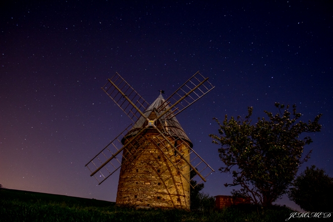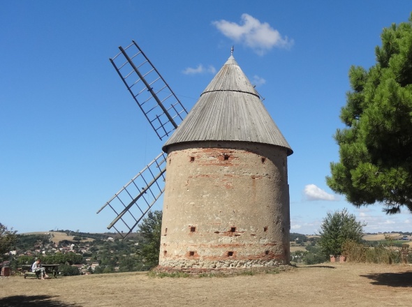 Joli moulin qui surplombe le village. Ses ailes à entoiler doivent tourner de temps à autre pour fabriquer de la farine.