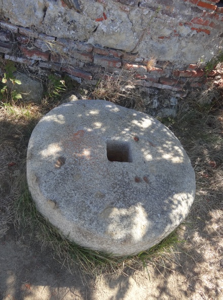 Joli moulin qui surplombe le village. Ses ailes à entoiler doivent tourner de temps à autre pour fabriquer de la farine. Le crépi de la tour n'est pas uniforme, c'est un peu dommage.