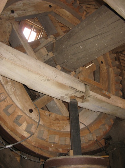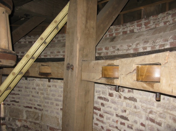 Queue (ou guivre) du moulin permettant de l'orienter face au vent |