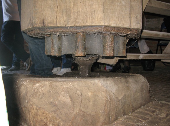 Pointe sur laquelle repose le pivot qui supporte les planchers