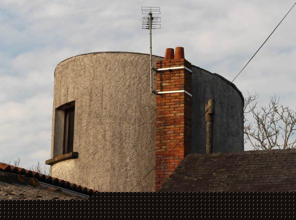 Moulin Eraud Cet ancien moulin tour est situé dans la cour d'une école. Utilisé dans la pédagogie ? (Photos Daniel Trouillard - 16 mars 2012)
