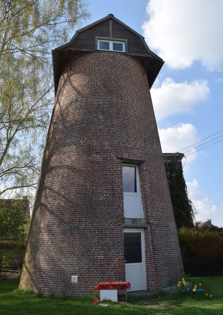 Ancien moulin tour de forme tronconique situé dans une propriété privée. Un beau toit a été installé au fait de la tour mais je doute qu'il tourne un jour car la gouttière est fixée à la tour ! Il serait si beau avec de nouvelles ailes !