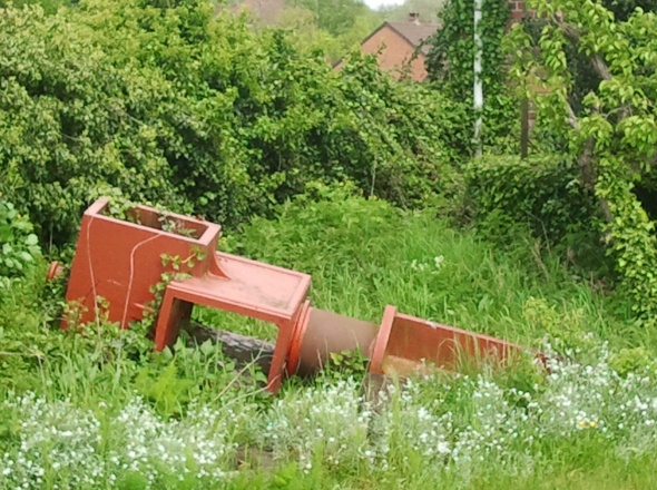 Ancien moulin tour de type tronconique, propriété privée, utilisé en parti comme habitation. Que fait cet axe dans la propriété ?